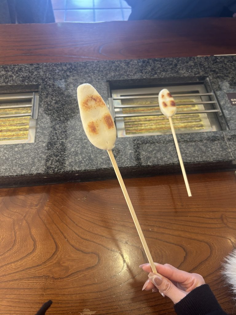 途中で笹かまの手焼き体験もしました。